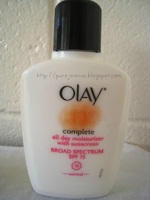 I don't need a lot of moisturizing because I have oily skin. I find Olay Complete All Day Moisturizer with SPF 15 gives me just the right amount of moisture. I buy this when I get lazy searching for my next moisturizer. My mom really loves "Oil of Olay" though, she has been using this since as long as I can remember.